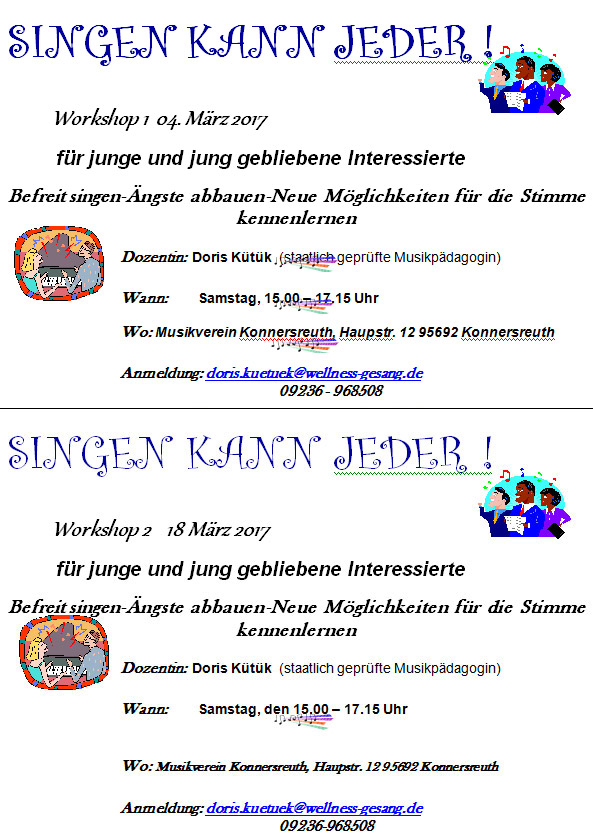 - Sänger (Kirchenchor, Band usw.), die lernen wollen, wie man mit seiner Stimme entspannt und schonend umgehen kann, um Anforderungen besser gerecht werden zu können.